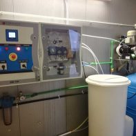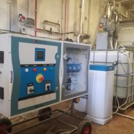 Electrolyzed water describes two solutions—a grease-cutting cleaner and a powerful sanitizer—which an electrolyzed water system produces through the process of electrolysis. The Hypochlorous acid, Anolyte, acts as a high-efficacy sanitizer, while the Sodium hydroxide, Catholyte, is a broad spectrum cleaning solution. The Anolyte or Hypochlorous acid, the disinfectant, will eliminate most common types of bacteria, viruses, fungi, and spores within seconds of its application, and has tested to be 80 percent more powerful at 50 parts per million than chlorine bleach at 200 parts per million. The Catholyte or sodium hydroxide, a non-foaming detergent, is an effective solution for all-purpose cleaning.