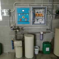 Electrolyzed water describes two solutions—a grease-cutting cleaner and a powerful sanitizer—which an electrolyzed water system produces through the process of electrolysis. The Hypochlorous acid, Anolyte, acts as a high-efficacy sanitizer, while the Sodium hydroxide, Catholyte, is a broad spectrum cleaning solution. The Anolyte or Hypochlorous acid, the disinfectant, will eliminate most common types of bacteria, viruses, fungi, and spores within seconds of its application, and has tested to be 80 percent more powerful at 50 parts per million than chlorine bleach at 200 parts per million. The Catholyte or sodium hydroxide, a non-foaming detergent, is an effective solution for all-purpose cleaning.